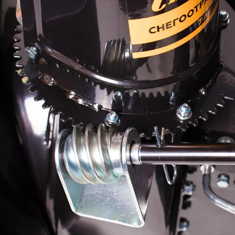 Направление выброса снега регулируется вручную. Для этого предусмотрен рычаг, настраивающий поворот желоба.
