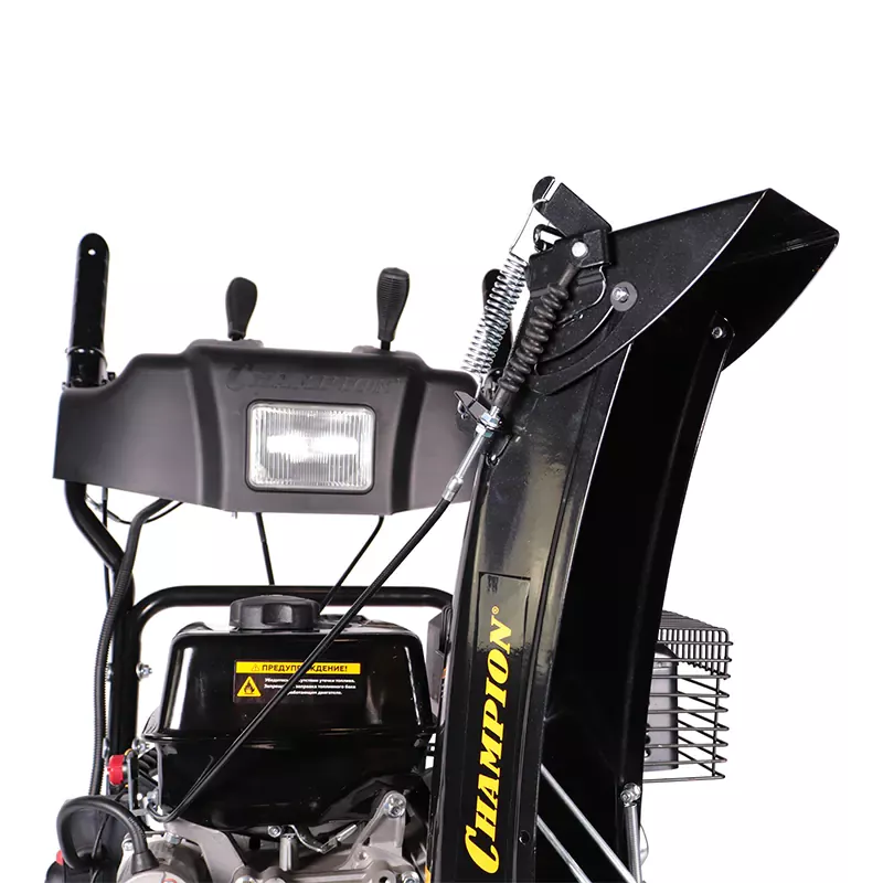 Металлический желоб выброса снега не деформируется при отрицательной температуре. Направление выброса можно менять на 95 градусов вправо и влево. Рычаги для регулировки направления и дальности выброса снега, включения хода и переключения передач удобно расположены на панели управления.