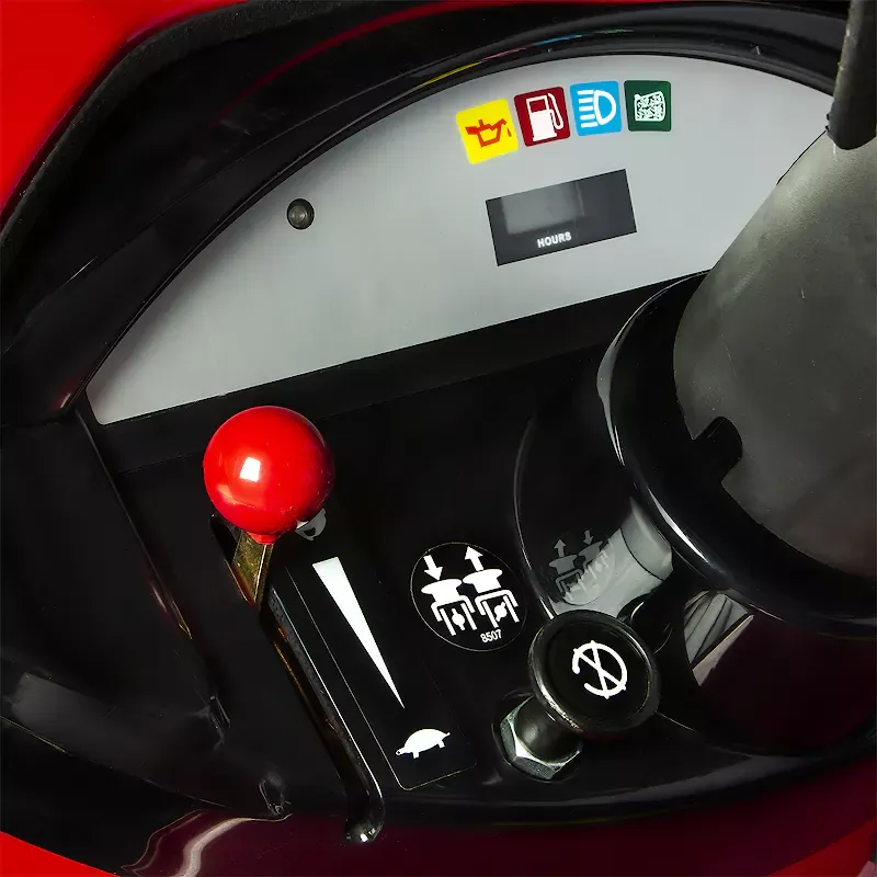 Колеса садового минитрактора DDE 106-300 с большими пневматическими шинами обеспечивают хорошее сцепление с поверхностью и плавный ход даже по неровному участку, при этом не повреждают растения. Райдер оснащен комфортным креслом и рулем с мягкой накладкой, за который удобно держаться даже при продолжительной работе. В передней части находятся фары. Подсветка позволяет косить траву рано утром или вечером, когда на улице темно.