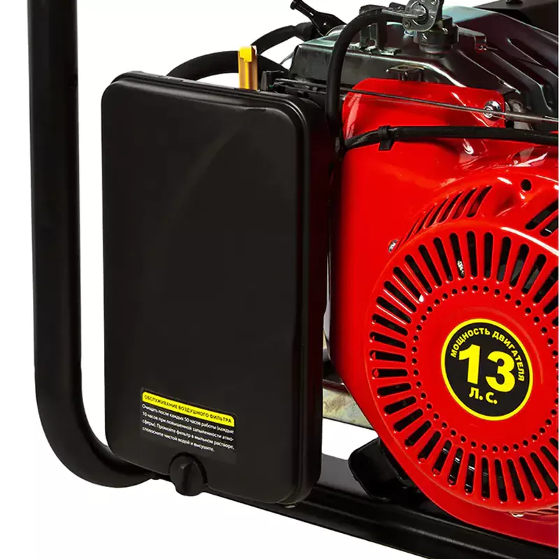 Генератор способен кратковременно отдавать мощность, которая превышает максимальную. Благодаря этому модель может питать устройства с асинхронными двигателями: компрессоры, кондиционеры, насосы и т.д. Невысокий расход топлива в сочетании с вместительным топливным баком объемом 25 л обеспечивает непрерывную работу генератора в течение длительного времени. Вам не придется часто прерываться для заправки.