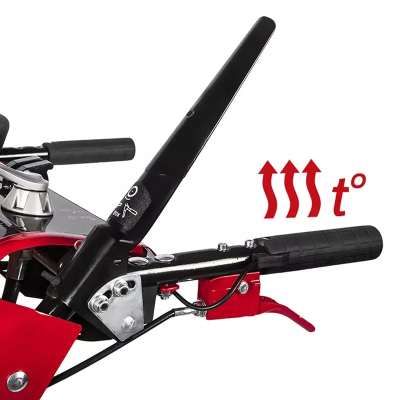 Яркая фара обеспечивает не только удобство работы в условиях плохой освещенности, но и безопасность во время уборки вблизи проезжей части. Руки не замерзнут даже в сильный мороз благодаря подогреву рукояток. Закрепленная на корпусе лопатка помогает очищать желоб от засоров и наледи.