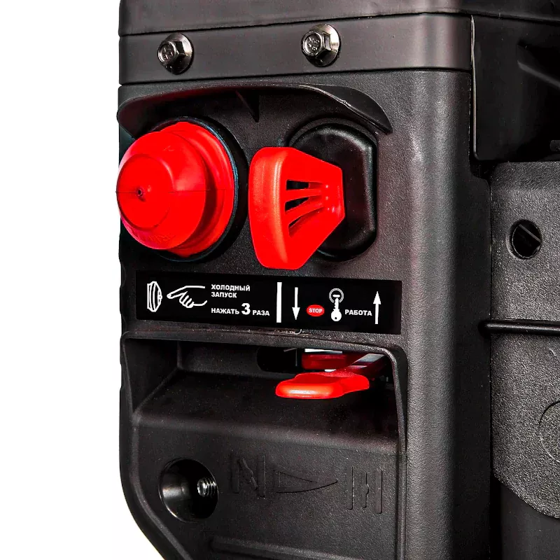 Самоходный бензиновый снегоуборщик прост и удобен в использовании. Его не нужно толкать перед собой, поэтому больших усилий для управления машиной не требуется. Двигатель можно завести вручную или с помощью электростартера, подключенного к сети 220 В.