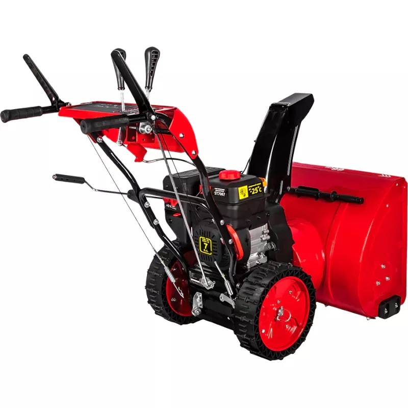 Бензиновый снегоуборщик DDE ST7067 с двигателем мощностью 7 л.с. и ковшом шириной 66 см поможет быстро и без излишних усилий расчистить двор, парковочное место или проложить пешеходные дорожки после сильного снегопада. Металлические шнеки измельчают снежную массу и направляют ее в разгрузочный желоб. Дальность выброса достигает 11 м.