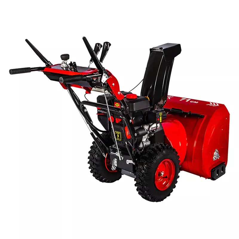 Снегоотбрасыватель оснащен бензиновым двигателем Loncin серии Snow Engine, благодаря чему хорошо заводится даже при сильном морозе. Металлический шнек с зазубренными ножами загребает и перемалывает, в том числе мокрый и слежавшийся снег, что обеспечивает быструю уборку территорий. Направление выброса снега можно регулировать с приборной панели. Максимальная дальность составляет 15 м.