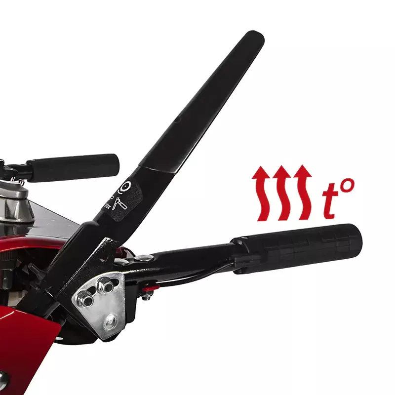 Специальные башмаки защищают асфальт или плитку от повреждения ковшом или шнеком. Рукоятки с функцией подогрева увеличивают комфорт при уборке снега в морозную погоду. Для работы в условиях сумерек или снегопада предусмотрена галогенная фара.