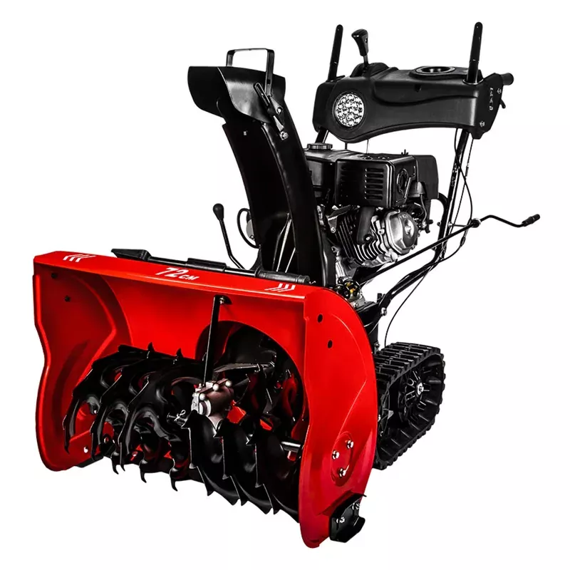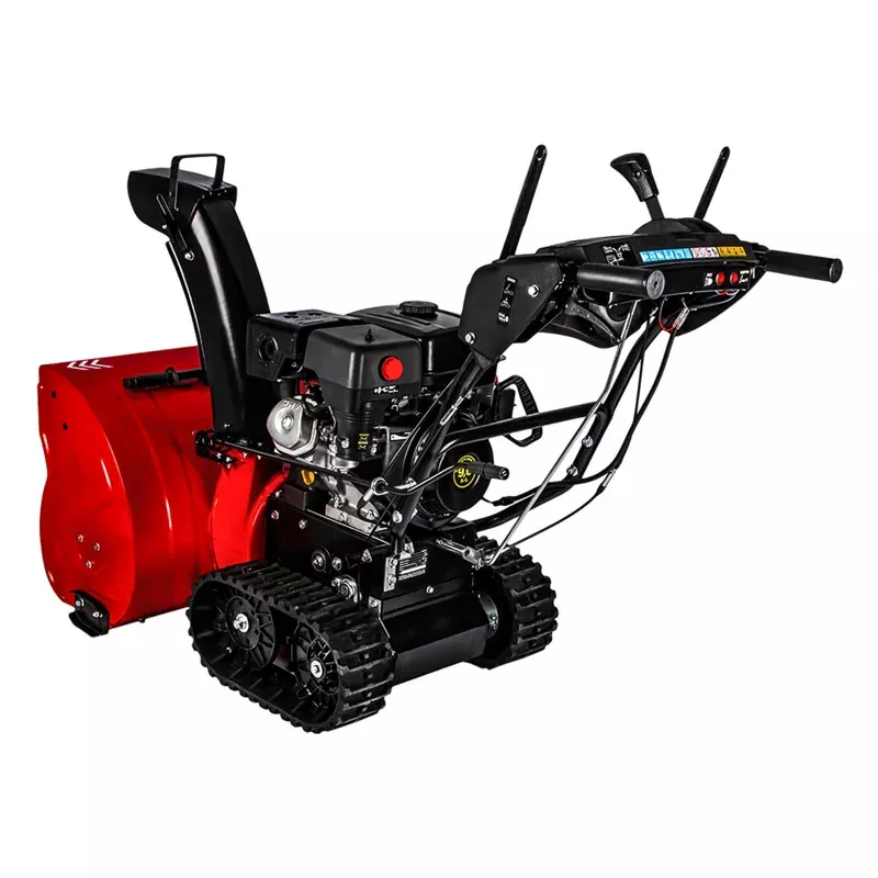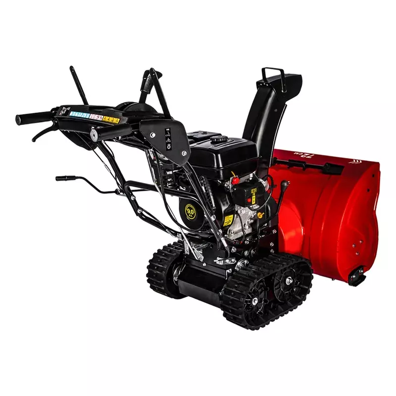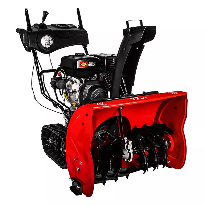 Бензиновый снегоуборщик DDE ST9072ET на гусеничном ходу отличается высокой проходимостью и эффективностью уборки плотного снега. Четырехтактный двигатель мощностью 9 л.с. заводится с помощью ручного стартера или устройства электрозапуска от сети 220 В. Машина оснащена яркой фарой и удобными элементами управления, которые позволяют изменять скорость движения, поворачивать желоб на 190° и регулировать дальность выброса до 12 м.