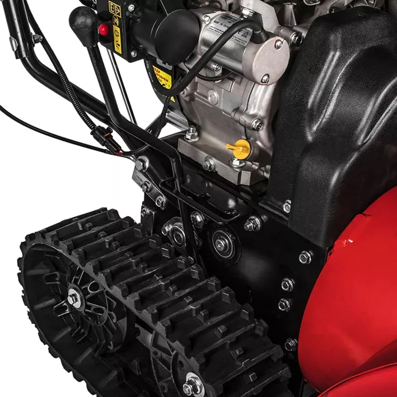 Четырехтактный двигатель рассчитан на эксплуатацию при минусовых температурах. Наличие праймера для подкачки топлива в карбюратор, облегчает запуск снегоуборщика DDE ST9072ET с помощью ручного стартера. Если поблизости есть розетка, то машину можно быстро завести от сети благодаря наличию электростартера.