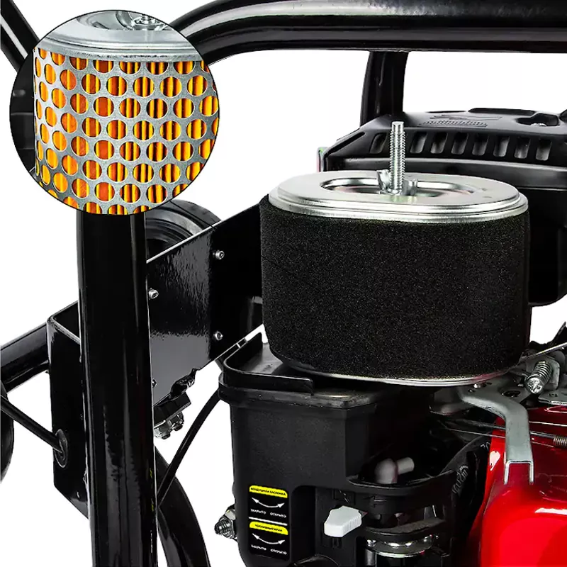 Виброплита оснащена четырехтактным бензиновым двигателем Honda, который обеспечивает высокую производительность работы. Компактная плита удобна для трамбования даже узких дорожек. Кромка на краях отсутствует, что позволяет уплотнять сыпучие строительные материалы вдоль бордюров, ограждений или фундамента здания. Дополнительно можно устанавливать бак для воды. Жидкость предотвратит налипание асфальта и битумных смесей на рабочую плиту.