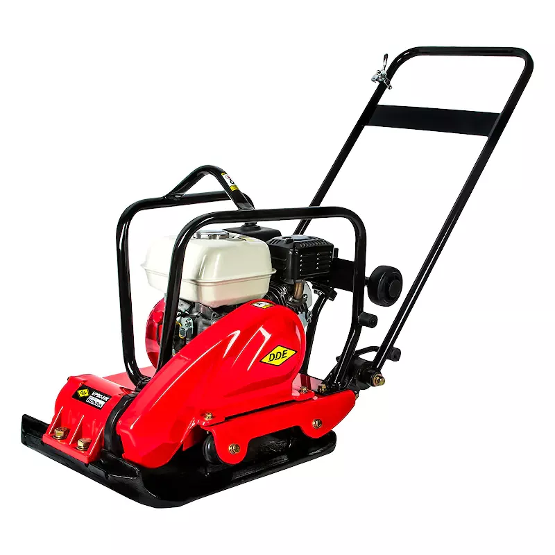 Бензиновая виброплита DDE VP90-HK помогает за один рабочий час уплотнить участок площадью до 650 м2. Для удобства предусмотрены транспортировочные колеса.