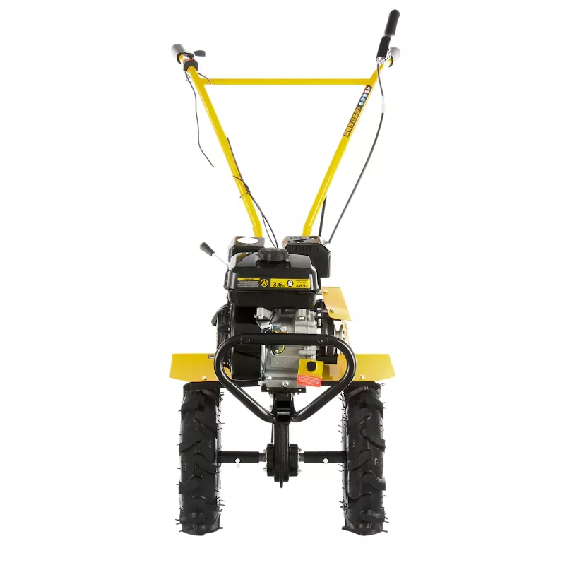 - Удобная работа — основные элементы управления расположены на рукоятках, для включения сцепления и регулировки оборотов двигателя не нужно наклоняться.
