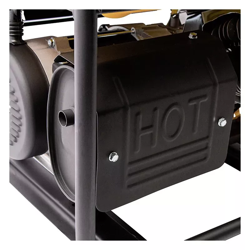 Рама бензинового генератора надежно защищает двигатель от механических повреждений. Она представляет собой трубу диаметром 32 мм с толщиной стенок 1,5 мм. Верхняя часть рамы образует держатели для удобной переноски, а нижняя служит устойчивым основанием для размещения даже на неровной поверхности..