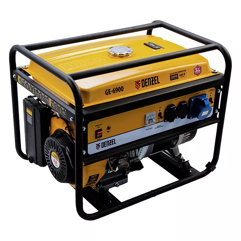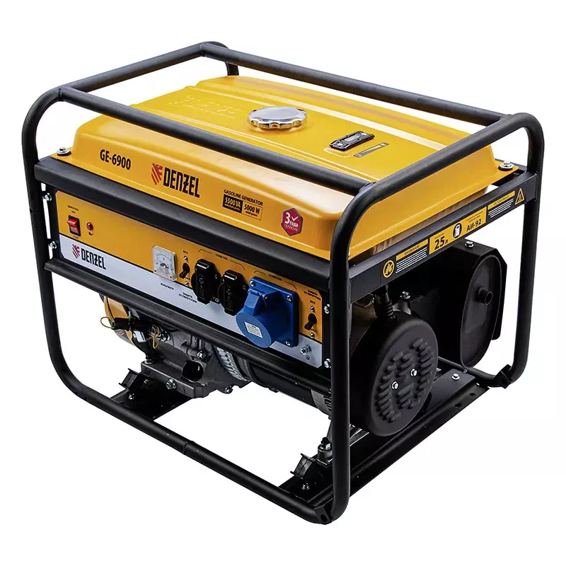 Все розетки бензогенератора Denzel GE-6900 оснащены предохранителями, которые защищают от короткого замыкания. Помимо этого, при резком скачке напряжения срабатывает автоматическое отключение. Это предотвращает поломку самого генератора, а также подключенных к нему потребителей.