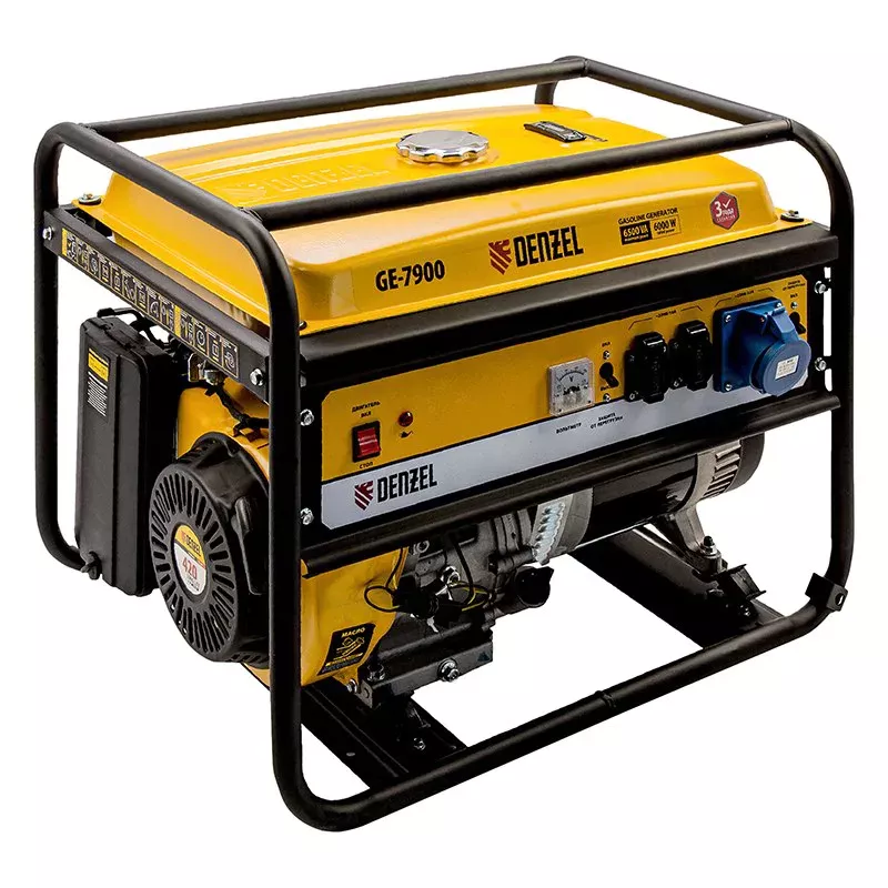 Бензиновый генератор Denzel GE-7900 предназначен для питания потребителей суммарной мощностью до 6 кВт. Модель обладает встроенным блоком AVR, который защищает от скачков напряжения, позволяя подключать чувствительную технику.