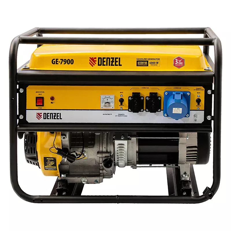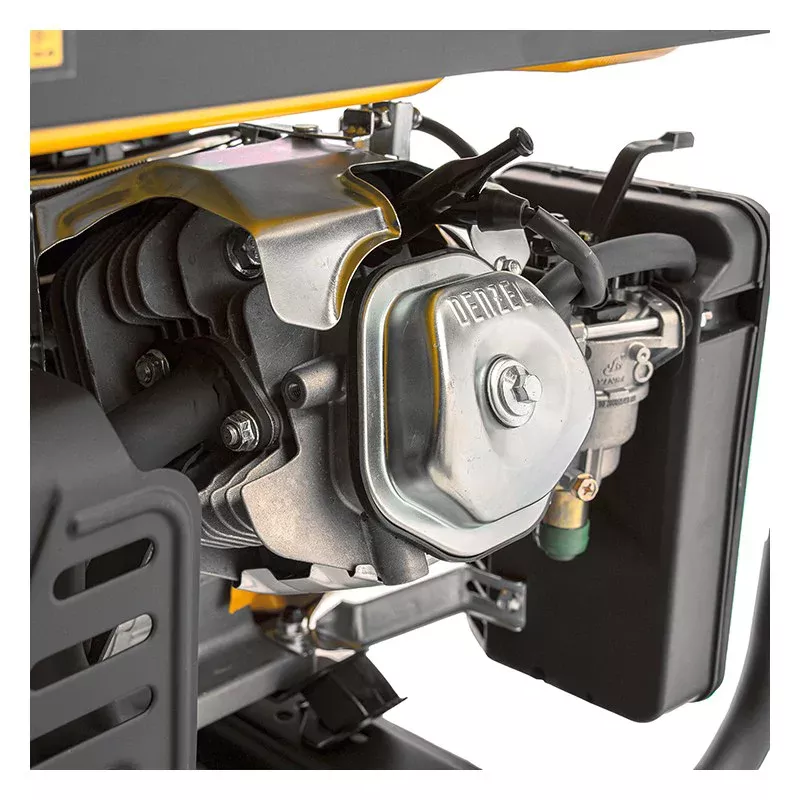 В бензогенераторе Denzel GE-7900 установлен двигатель Long Life Series. Для длительного срока службы он обладает чугунной гильзой, а также стальными распредвалом, толкателями клапанов и коленвалом. Обмотка альтернатора изготовлена из меди. Такой материал, в отличие от алюминия, меньше нагревается, хорошо проводит ток и рассчитан на длительный срок службы. Вал хорошо сбалансирован для снижения уровня вибрации и увеличения ресурса работы подшипников коленвала.
