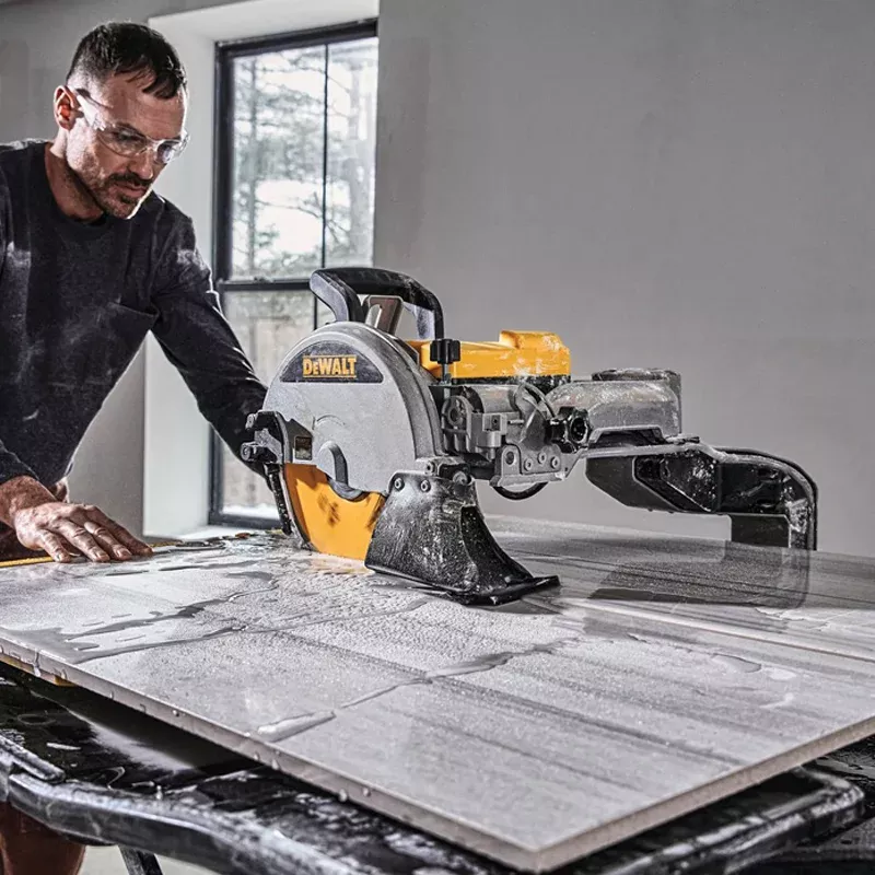 Плиткорез DeWalt D36000 — профессиональный станок мощностью 1600 Вт для мокрого резания фарфора, кафеля, искусственного и натурального камня, керамогранита, брусчатки, бетона, кирпича и других подобных материалов. Рабочим инструментом служит охлаждаемый водой отрезной диск с непрерывной кромкой диаметром 250 мм с посадочным размером 25,4 мм.