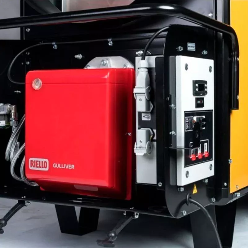 Теплопушка рассчитана на длительный срок эксплуатации. Вся конструкция держится на прочной стальной раме, закрепленной метрическими болтами. Транспортировочные колеса также сделаны из стали и имеют прорезиненные покрышки. В качестве топлива можно использовать как дизель, так и керосин. А функция предварительного подогрева горючего позволит запустить пушку даже в мороз.