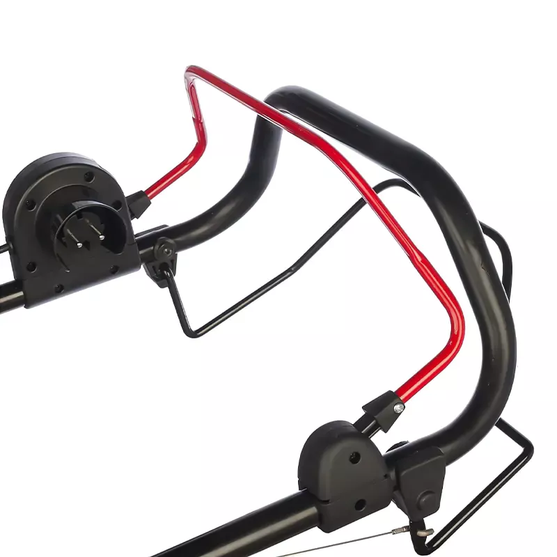 - Простая регулировка. Центральная регулировка высоты скашивания осуществляется рычагом на все 4 колеса, имеет 5 уровней (20/34/48/62/75 мм).