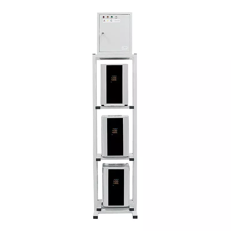 Трехфазный стабилизатор напряжения СНВТ ЭНЕРГИЯ HYBRID предназначен для стабилизации переменного напряжения в сети электроснабжения для потребителей общепромышленного, бытового и аналогичного назначения. Изделие относится к классу автотрансформаторных стабилизаторов со смешанным релейно-сервоприводным регулированием с помощью электромеханических реле и сервомотора. Изделие соответствует требованиям российских и международных стандартов. Технические условия и нормативная база на изделие устанавливаются стандартом предприятия SCT/008-2009.