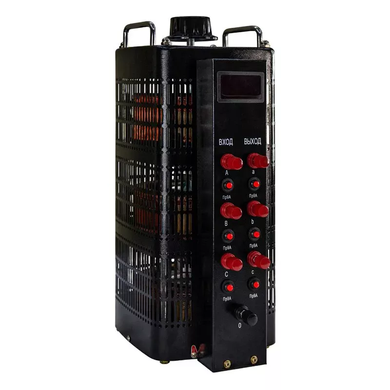 Лабораторный автотрансформатор (ЛАТР) серии TDGC, TSGC предназначен для плавного регулирования фазного напряжения от 0 до 300В под нагрузкой без разрыва цепи в трехфазной сети 380В 50Гц.