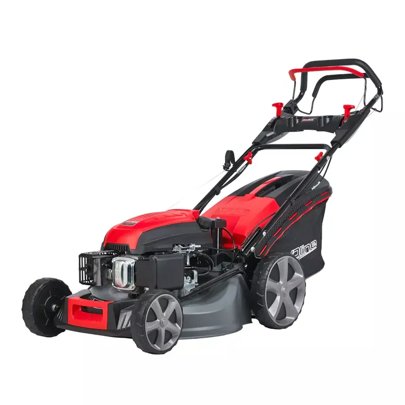 Модель оcнащена 4-тактным одноцилиндровым двигателем внутреннего сгорания TREX Y196V OHV (Китай), съемным травосборником, фронтальным бампером, дугообразной ведущей рукояткой и 4 колесами.