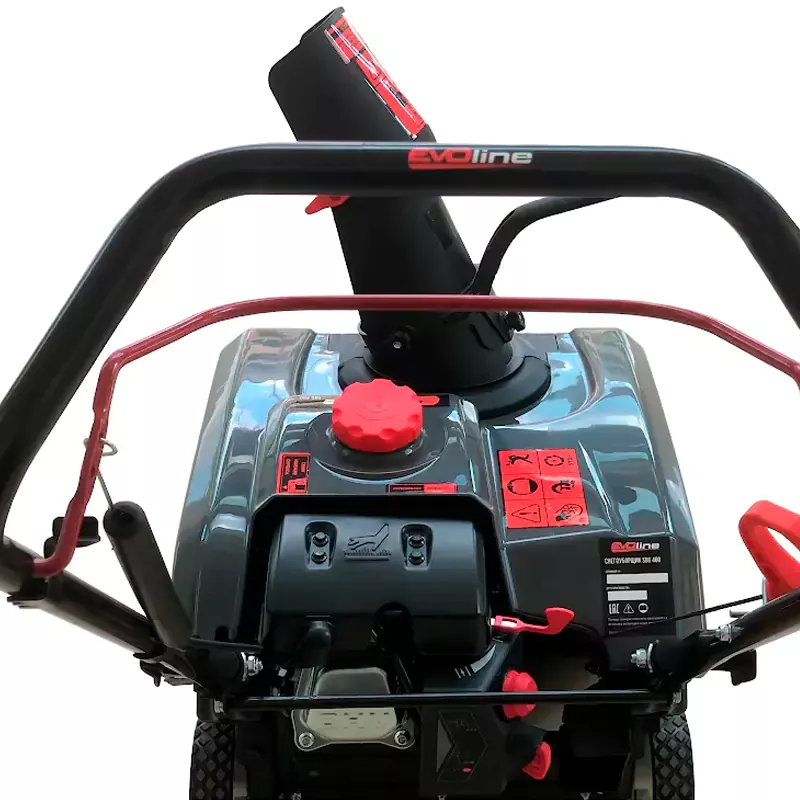 Двигатель машины без проблем заводится благодаря ручному насосу предварительной подкачки топлива. Колесный снегоуборщик EVOline легко катить по поверхности и направлять в нужную сторону, не прикладывая при этом излишних усилий. Вращение шнека мгновенно останавливается, если отпустить прижимной рычаг. Топливный бак емкостью 1,6 л обеспечивает продолжительную работу на одной заправке.