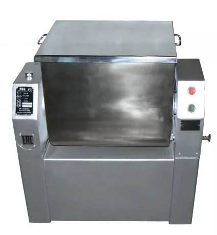 Удобная конструкция: при опрокидывании месильной емкости (дежи) оператор повторно включает вращение рабочего органа и выгрузка готового фарша происходит автоматически.