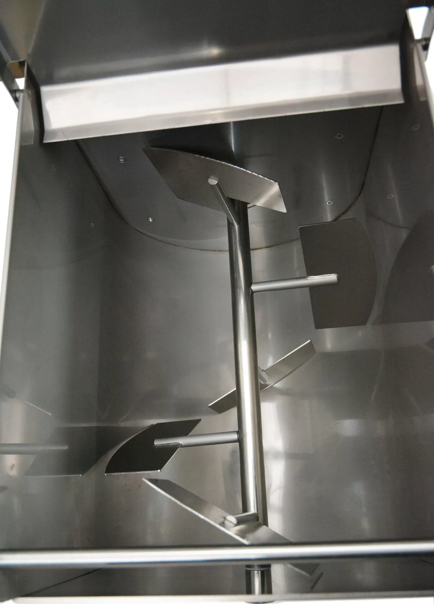 Нажать кнопку «Стоп», чтобы прекратить процесс перемешивания. Открыть крышку с отверстиями-дозаторами и крышу разгрузочного отверстия. Выгрузить полученный продукт.