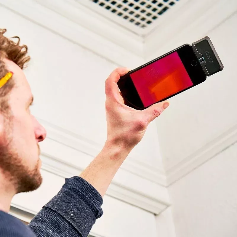 Тепловизор удобно использовать и носить с собой благодаря небольшим размерам. Для начала использования необходимо установить устройство в разъем смартфона, и камера будет готова к использованию.