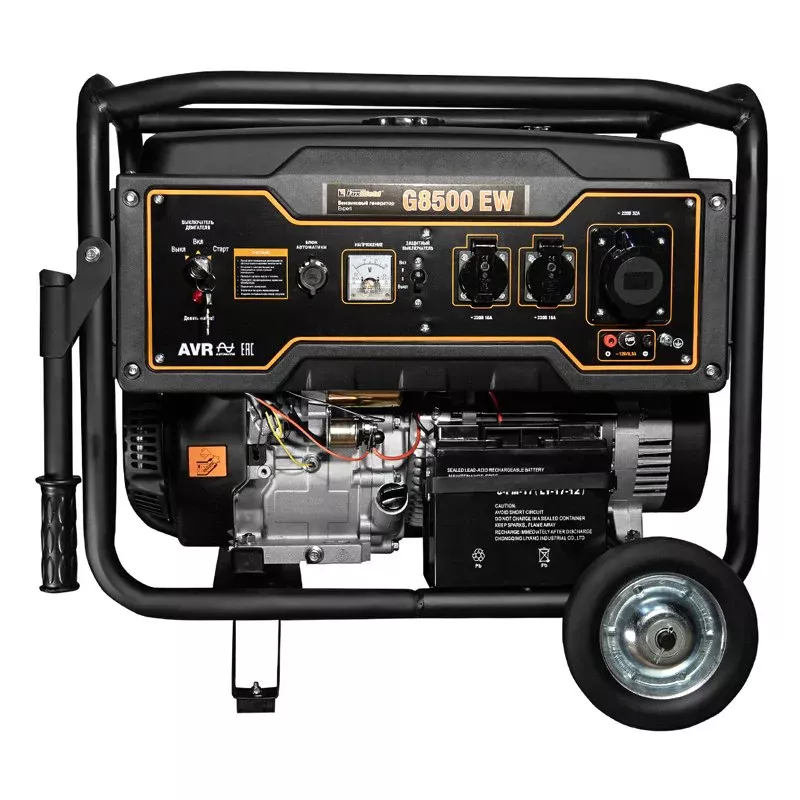 Бензиновый генератор используется в качестве резервного источника электроэнергии во время аварий и в местах, где центральной электросети нет. Завести двигатель можно как с помощью ручного стартера, так и повернув ключ в замке зажигания. В качестве топлива используется бензин АИ-92.