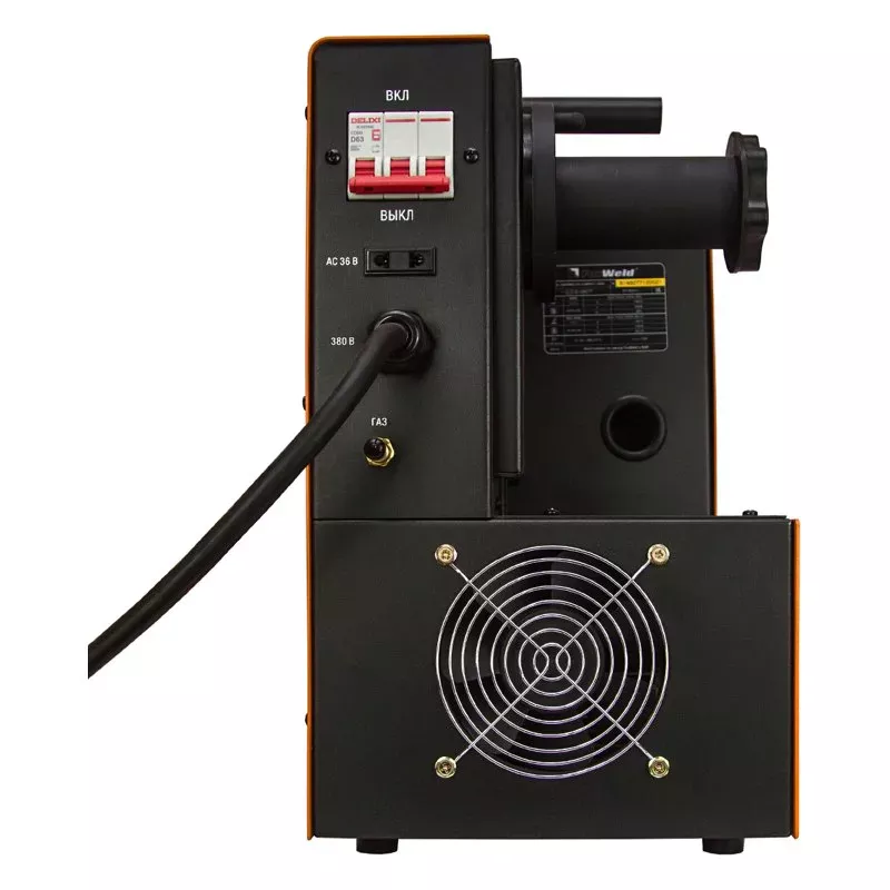 Для заправки проволоки сечением 0,8-1,2 мм достаточно нажать на кнопку. Подача производится с помощью стального механизма с двумя роликами. Для сварочного инвертора с открытой конструкцией подходят большие катушки диаметром 200-300 мм, весом 5 и 15 кг соответственно. Для ручной электродуговой сварки MMA используются штучные электроды сечением 1,6-5 мм. Система защиты предотвращает поломку электроники и силовых компонентов в случае перегрузки.