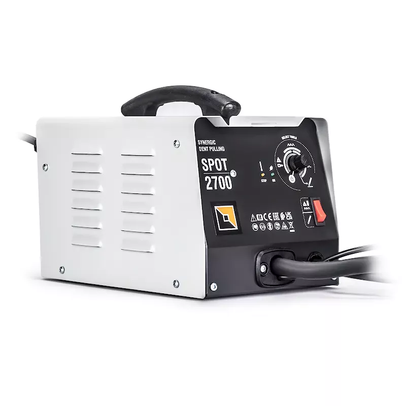 Споттер для точечной сварки позволяет выполнять вытягивание, выпрямление мелких вмятин и приварку волнообразных проволочек для работы по рихтовке. В отдельном режиме, предназначенном для использования угольного электрода, можно выполнять осадку поверхностей. Устройство обеспечивает высокую производительность приваривания шайб, крепежных болтов и заклепок при помощи электрода с омедненным наконечником.