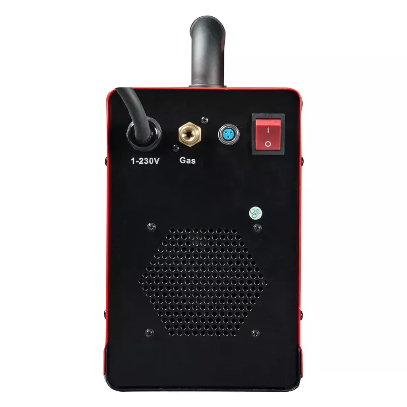 В комплект поставки входит сварочная горелка для аргонодуговой сварки с удобной рукояткой, выполненной из термостойкого пластика. Прорезиненные вставки обеспечивают надежное удержание инструмента. Возможность смены хвостовика позволяет работать в труднодоступных местах. Сопло, формирующее равномерный поток газа, изготовлено из высококачественной керамики, что способствует длительному сроку службы. Силу тока можно регулировать непосредственно на самой рукоятке.