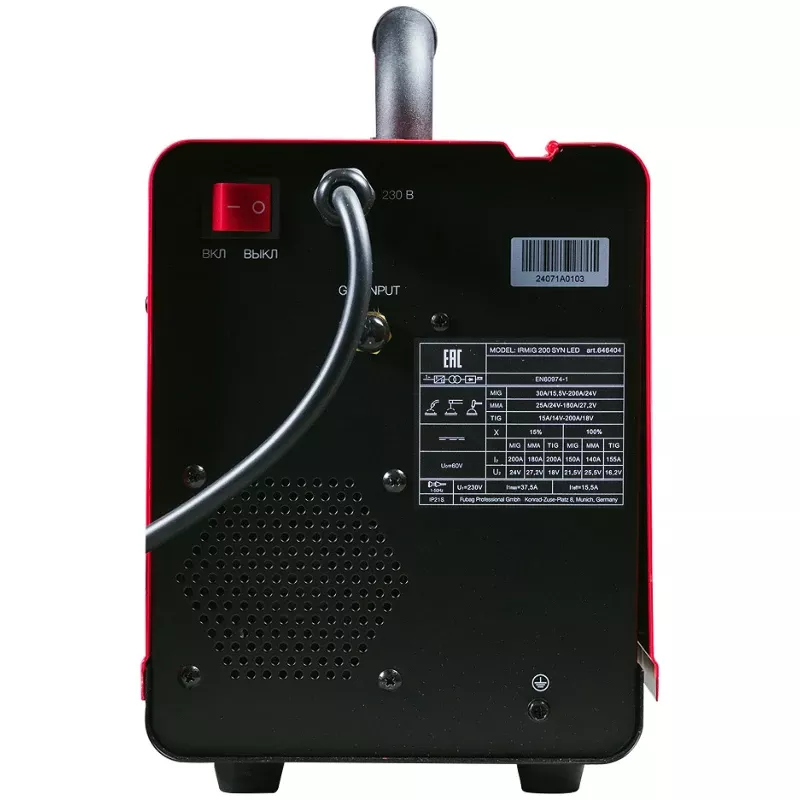 Сварочный полуавтомат Fubag IRMIG 200 SYN LED – высокопроизводительный сварочный аппарат с ярким LED-дисплеем. Выбор методов сварки MMA, MIG/MAG, TIG Lift. Имеет 11 встроенных синергетических программ.