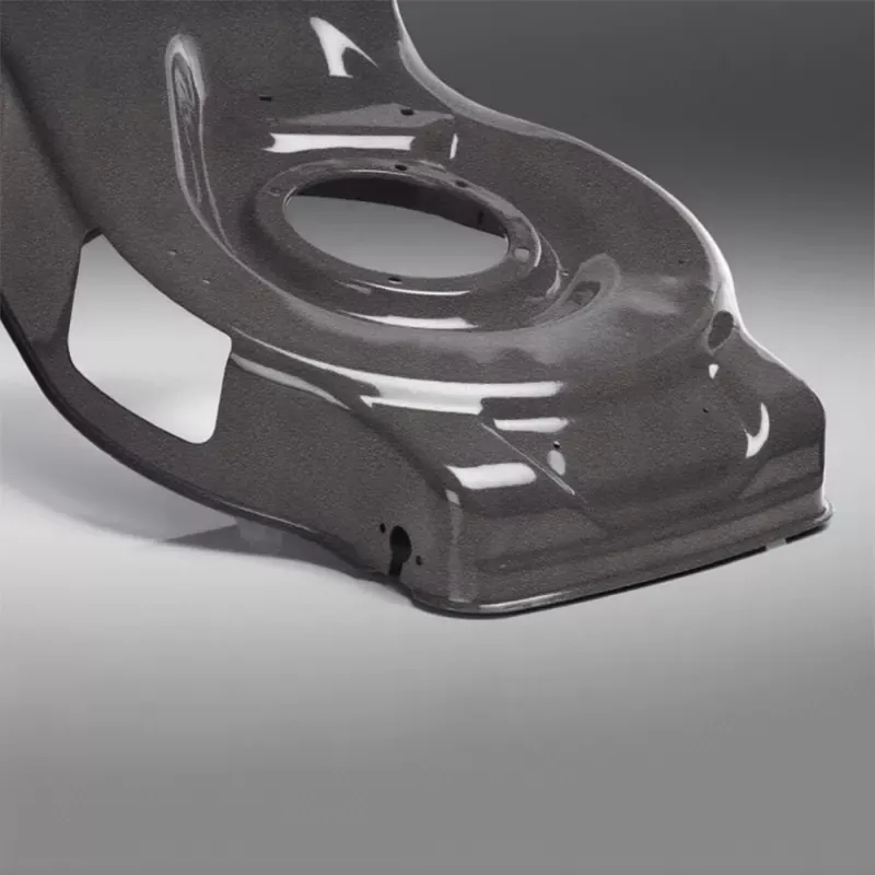 - Цельнометаллический нож S-образной формы создает мощный поток воздуха, который затягивает всю скошенную траву внутрь.