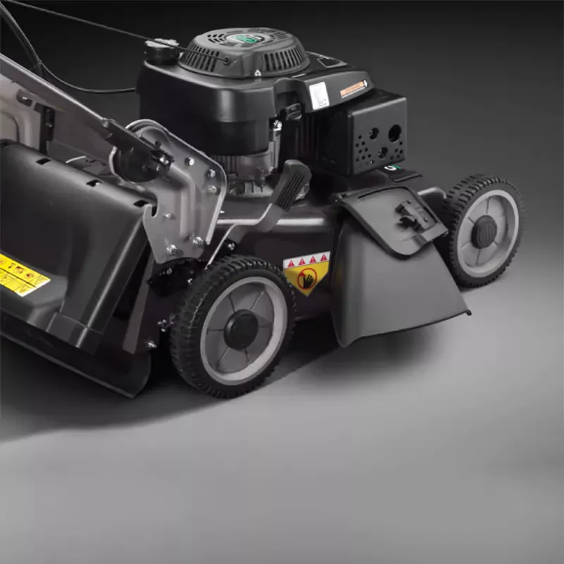 Все органы управления расположены на верхней части рамы, вы можете настроить скорость движения машины и количество оборотов двигателя не останавливая работу. Мягкие эргономичные рукоятки обеспечивают удобный и надежный захват. Задний дефлектор предотвращает выброс травы и посторонних предметов в вашу сторону.