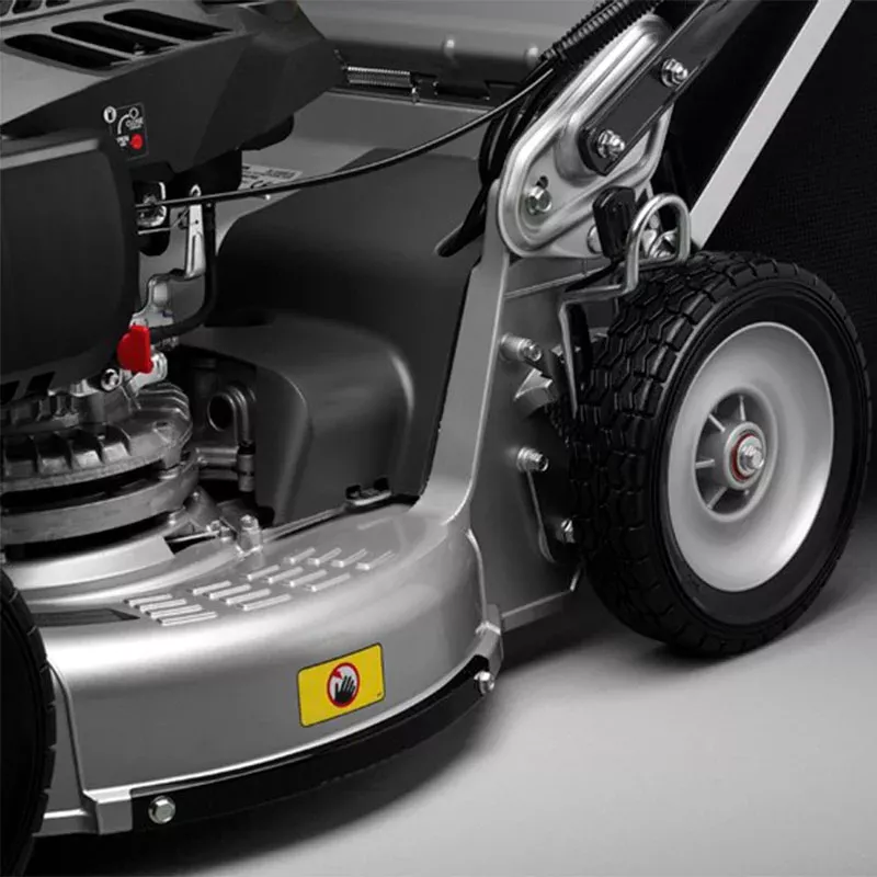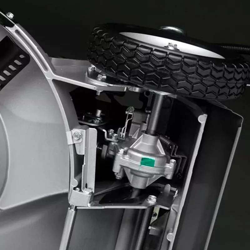 Облегчает оператору работу на газоне, склоне или неровных участках. Отличается высокой надежностью. Задний привод осуществляется посредством приводного вала и редуктора задней оси. Рабочая скорость стрижки травы – 1 м/с (3,6 км/ч).
