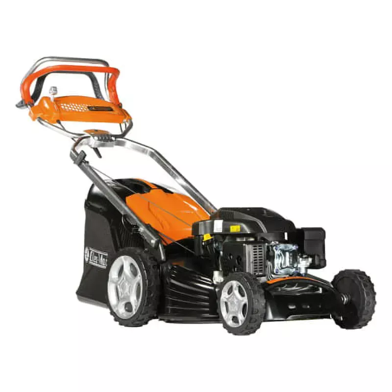 Все колеса снабжены шарикоподшипниками. Задние колеса больше передних. Это облегчает маневрирование и обеспечивает плавный ход по небольшим неровностям на участке. За счет привода на колеса управление максимально простое. Вам не понадобится толкать газонокосилку вперед, т.к. она движется самостоятельно с определенной скоростью. Для большего удобства рукоятка настраивается по высоте, что позволит устанавливать ее под ваш рост. А для компактного хранения газонокосилки Oleo-Mac G 53 THX ALLROAD EXA 4 или ее перевозки в багажнике легкового автомобиля держатель полностью складывается. На переднем бампере расположена ручка для переноски машины.