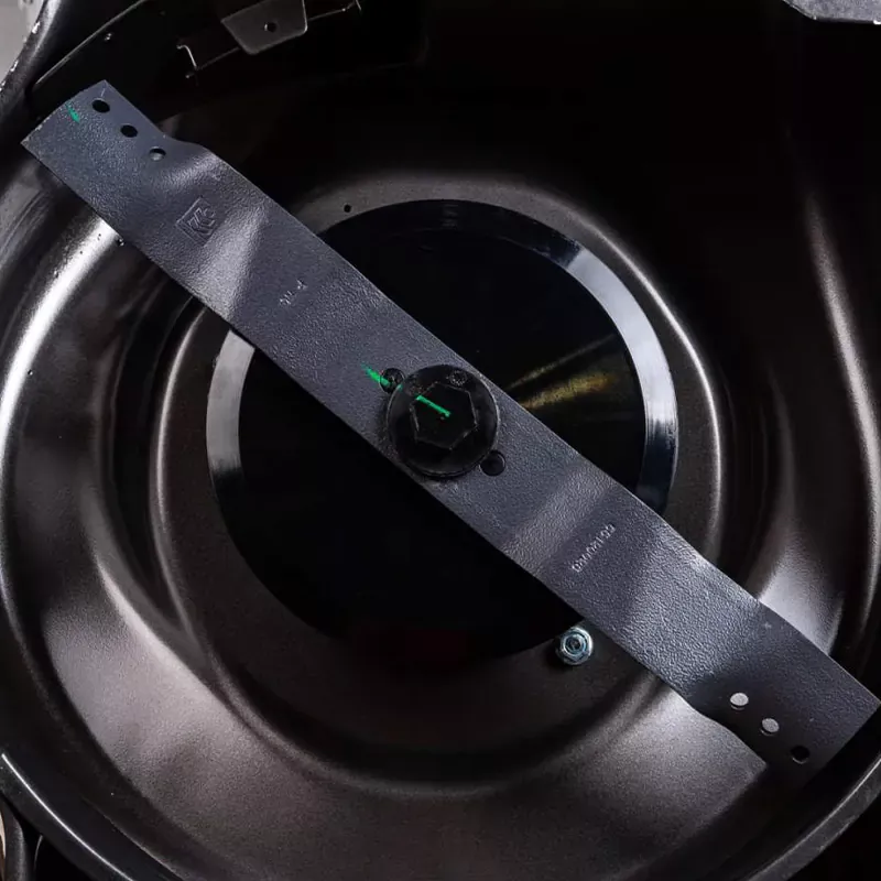 - Стандартный мульчирующий нож. Позволяет тщательно измельчать срезанную траву, таким образом, ее объем уменьшается, что дает возможность лучше заполнить весь объем травосборника.