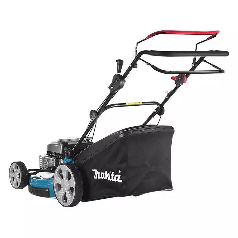 - Удобство хранения и использования. Складная рукоятка упрощает хранение и использование бензиновой газонокосилки Makita PLM5600N.