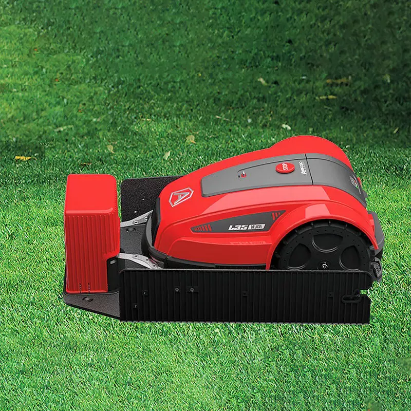 Если роботу-газонокосилке требуется больше энергии для завершения кошения газона, чем осталось в ее распоряжении, она сама находит дорогу к зарядной станции (входит в комплект), выбирая кратчайший путь по кабелю периметра (кабель нужной длины приобретается отдельно). После восполнения заряда машина продолжает свою работу.