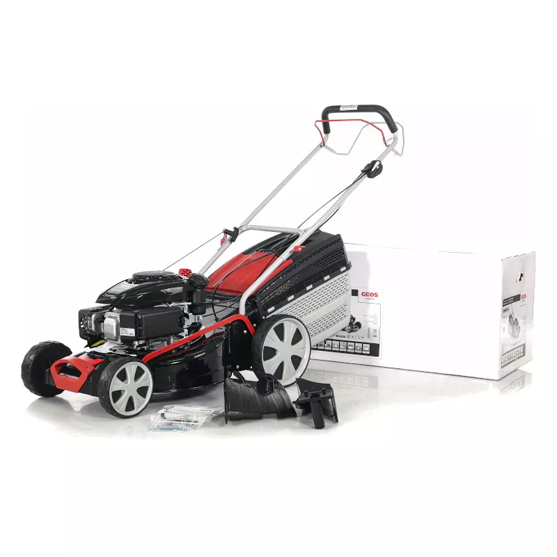 Машина предназначена для скашивания газонной травы на участках площадью до 1800 м2. Благодаря системе легкого запуска двигатель заводится ручным стартером с полуоборота. Пусковой трос можно закрепить с помощью специального фиксатора на рукоятке, чтобы не наклоняться к мотору. Самоходная бензиновая газонокосилка Geos движется с постоянной скоростью. Задние колеса большего диаметра, чем передние, улучшают проходимость, обеспечивают маневренность машины. Резиновые протекторы не оставляют заметных следов на газоне.