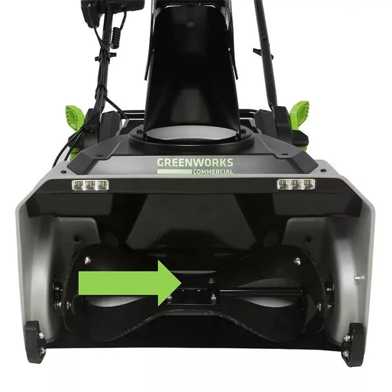 Разборную рукоятку можно компактно сложить для удобства перевозки или хранения. При запуске снегоуборщика Greenworks 82SN22 автоматически включаются яркие светодиодные фары, обеспечивающие подсветку зоны уборки. Прочный стальной шнек выдерживает удары о препятствия и твердые предметы. Благодаря обрезиненной поверхности механизм не царапает декоративное дорожное покрытие. Бесщеточный двигатель отличается экономным расходом заряда аккумулятора и не требует обслуживания. В случае перегрева или чрезмерной нагрузки происходит его автоматическое выключение во избежание поломки.