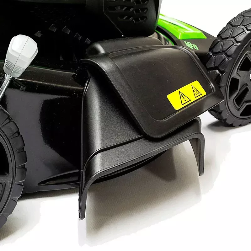 В косилке предусмотрен отсек для хранения запасного аккумулятора. Если у вас внезапно разрядится батарея, то вы сможете заменить её на новую и продолжить работу.
