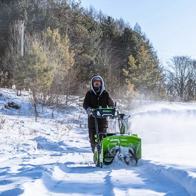 Аккумуляторный снегоуборщик Greenworks GD82ST56 — самоходная модель с переключателями скорости движения и вращения шнека. Машина работает от универсальных аккумуляторов, которые подходят для прочей садовой техники из линейки 82V Greenworks. Двухступенчатая система с острым шнеком и крыльчаткой обеспечивает выброс снега на расстояние до 15 м. С помощью колесного снегоочистителя можно быстро и без особых усилий расчистить придомовую территорию, парковку или подъездные пути после снегопада.