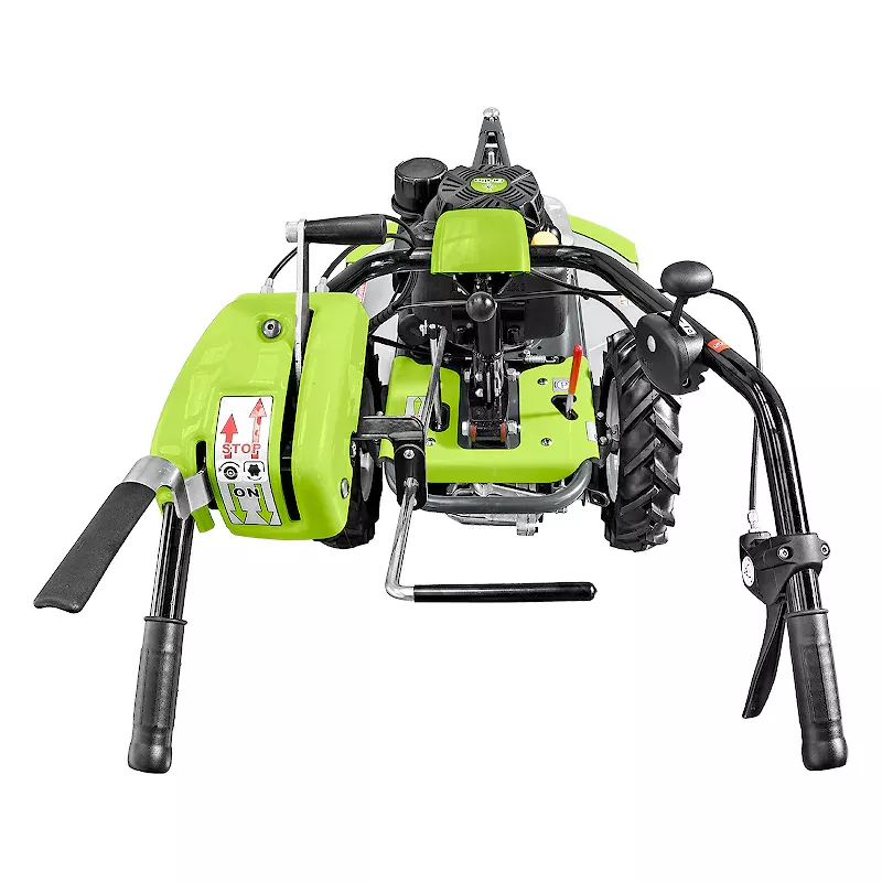 - Переднее поворотное колесо обеспечивает превосходное управление косилкой.