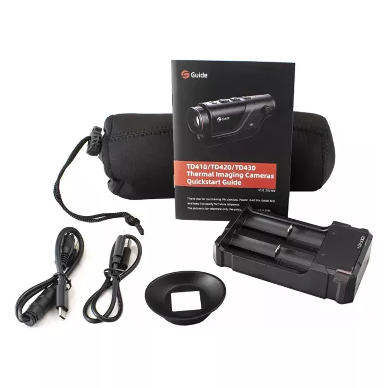Тепловизор Guide TD410 (1,9x, F19mm) с матрицей 400x300 и Wi-Fi — лёгкий, прочный и очень удобный в эксплуатации тепловизионный монокуляр компакт-класса, предназначенный для визуальных наблюдений на малых и средних дистанциях. Показывает чёткую, содержательную картинку при любой погоде и освещённости и позволяет обнаружить человека на расстоянии до 800 м.