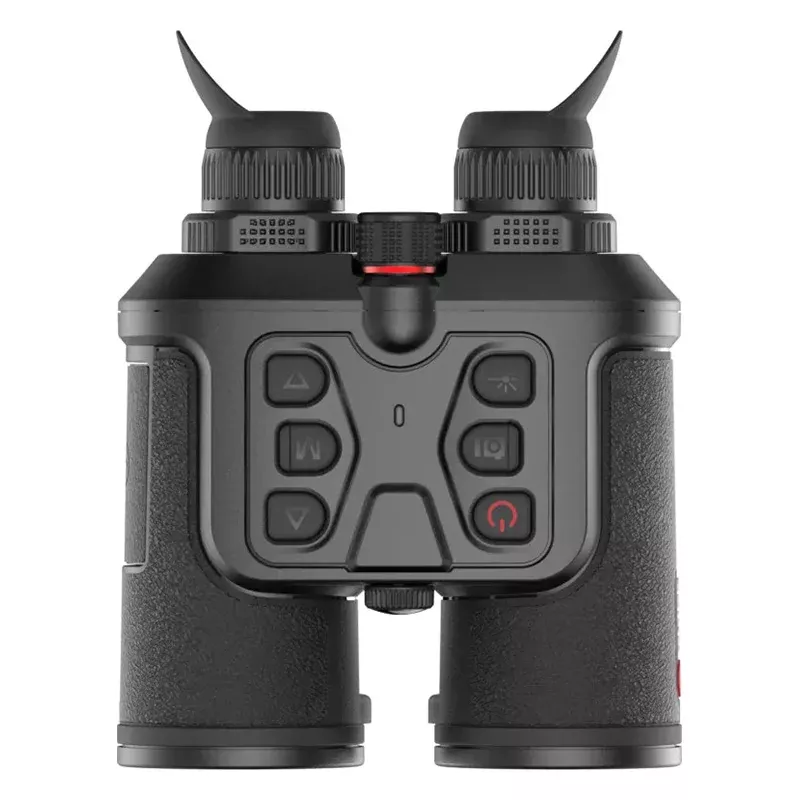 Благодаря тому, что изображение с объектива транслируется одновременно на оба экрана, улучшается восприятие глубины и контраста, а глаза во время длительных наблюдений устают намного меньше, чем при работе с аналогичным монокуляром. Механика тоже понятная, удобная и привычная, как у дневного бинокля с барабаном центральной фокусировки и раздельной диоптрийной подстройкой.