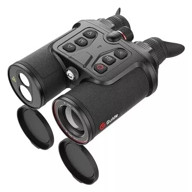 Профессиональный бинокулярный тепловизор с дальномером Guide TN650 (640x480, F50mm) обеспечивает комфортные наблюдения двумя глазами, эффективно работает при крайне низких температурах (до -30C) и в условиях ограниченной видимости (туман, дождь, тёмное время суток), выполняет точные линейные замеры до 600 м и может распознать человека на расстоянии в 1000 м.