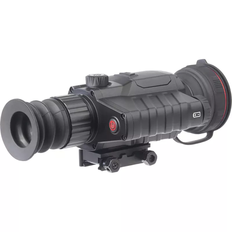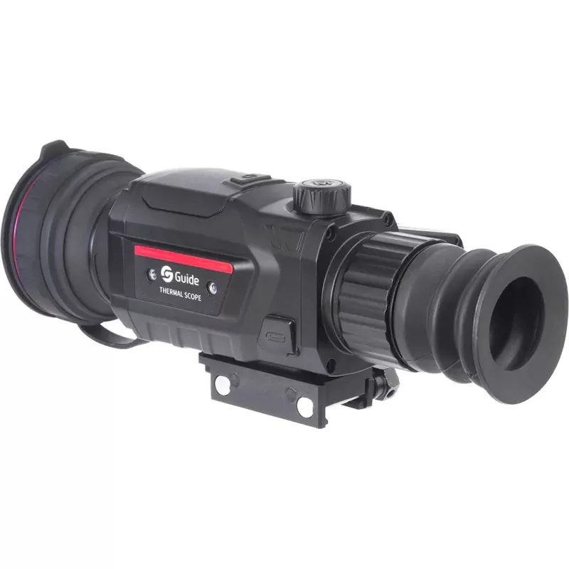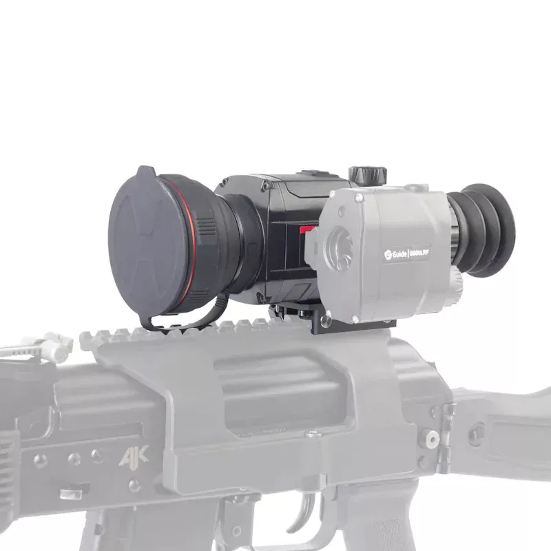 Тепловизионный прицел Guide TR450 с объективом 50 мм и дальностью обнаружения до 2000 м значительно расширяет возможности стрелкового оружия. Инфракрасный детектор с разрешением матрицы 384x288 позволяет обнаруживать и четко видеть цель в любых погодных условиях и независимо от наличия источника света. Устройство работает от сменных Li-Ion аккумуляторов напряжением 3,7 В. Встроенная стадиометрическая шкала показывает примерное расстояние до цели. На корпусе есть отверстия для крепления внешнего дальномера.