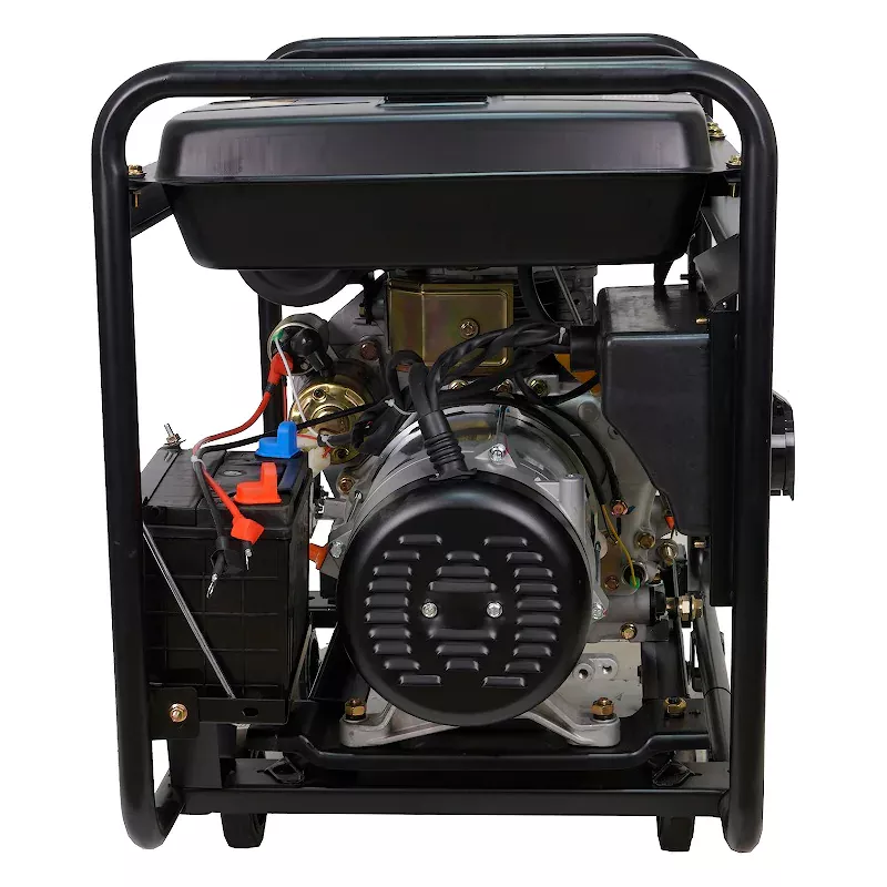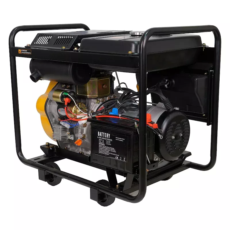В дизельном генераторе установлен 4-тактный одноцилиндровый двигатель объемом 455 см3 мощностью 11 л.с. с воздушным охлаждением. Медная обмотка альтернатора отличается высокой проводимостью и прочностью, практически не греется при больших нагрузках. Вы легко запустите двигатель с помощью электрического или ручного стартера. Автоматический регулятор стабилизирует напряжение на выходе.